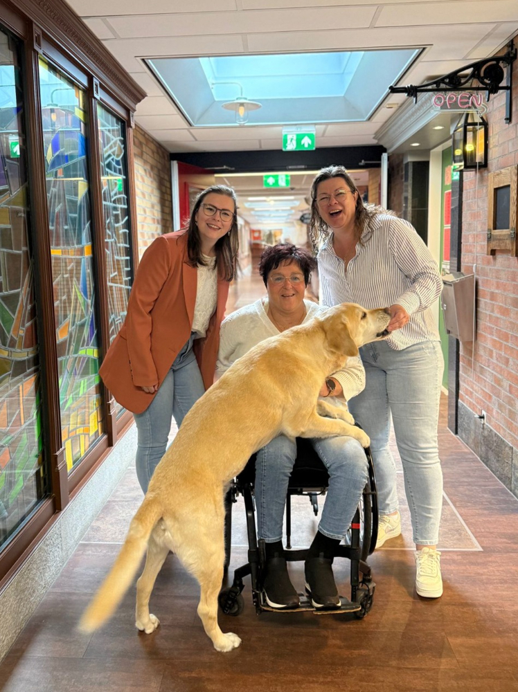 “Ik zou er niet alleen kunnen werken. We werken hard, maar we hebben ook tijd voor elkaar. We hebben een fijne samenwerking en we zien elkaar meerdere keren per dag. Ieder van ons zit namelijk op een andere plek. Melissa zit bij de artsen, Ine zit met haar hulphond Chef bij de zorgbemiddeling en ikzelf zit bij de behandelaren”, vertelt Elise.
