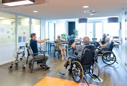De sfeer in De Wellen is warm en gastvrij. Familieleden en vrienden komen ‘thuis’ als ze op bezoek komen. Diezelfde familieleden en vrienden spelen een belangrijke rol in het leven van de bewoners. Samen met medewerkers en vrijwilligers zorgen zij ervoor dat hun dierbaren zoveel mogelijk hun vertrouwde leven voort kunnen zetten.