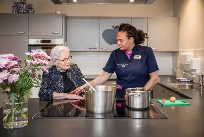 Mensen met dementie wonen in vier kleinschalige woningen in groepjes van maximaal zes bewoners. De zorg is zoveel mogelijk afgestemd op de wensen van de bewoners. Want het is fijn als zij zoveel mogelijk hun vertrouwde leven kunnen voortzetten. Daarvoor zetten wij ons in. Dat doen we graag samen met mantelzorgers, familie, vrienden en kennissen. Zij weten immers als geen ander wat er nodig is om het leven zo gewoon mogelijk door te laten gaan. Samen komen we verder.