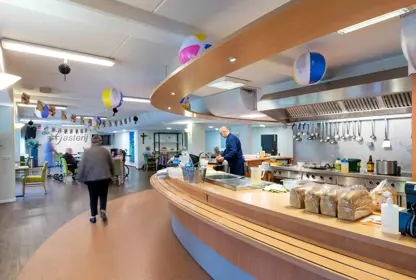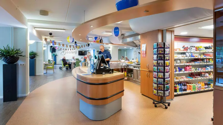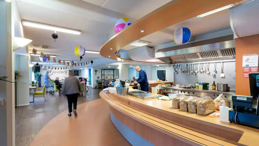 Sint Antonius is een klein huis. Het staat midden in Volkel en maakt volop deel uit van het dorpsleven. Wonen in het dorpshart biedt de mogelijkheid voor een wandelingetje naar de bibliotheek of het winkelcentrum op de hoek. En in de tuin onder de oude beuk, bij de Mariagrot of in de kiosk, vinden bewoners rust. Dat past bij de gemoedelijke sfeer in Sint Antonius. De deuren van restaurant De Gasterij staan voor iedereen wijd open voor een kop koffie of een warme maaltijd. En omdat we vinden dat eten ook ‘beleven’ is, zie je de kok aan het werk.